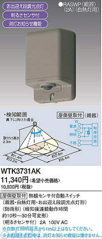 ■[屋側壁取付]熱線センサ付自動スイッチ(親器・白熱灯用・お出迎え段調光点灯形)(防雨形)■(検知後連続動作時間約10秒 - 30分可変形)(明るさセンサ付)(ブラウン)■白熱灯専用■子機が2台まで、接続できます(最大3箇所)■スイッチ「別売」と組み合わせると壁面からの連続点灯切替ができます。